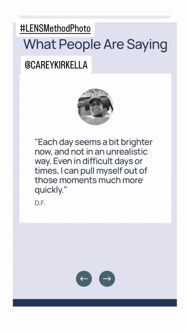 I’m passionate about mental and emotional health, and so I’ve combined my love of storytelling photography and personal development by creating The L.E.N.S. Method™. It’s a framework I’ve designed to help others learn what I’ve been doing for my entire life - how to use the process of making images as a tool for mindfulness and emotional resilience. It’s smartphone photography as a force for good in our lives.